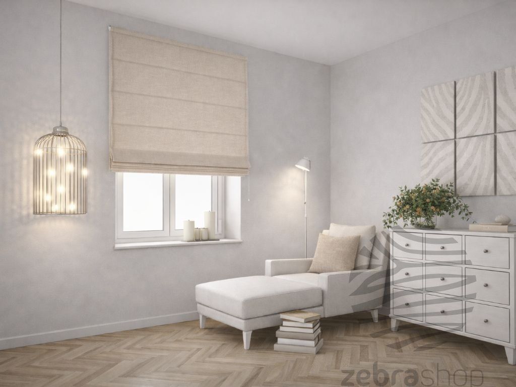 • Římská roleta s řetízkovým ovládáním výroba na míru zebrashop látka OP320 béžový melír Nejprodávanější Kód: 1868/80/100/VPR